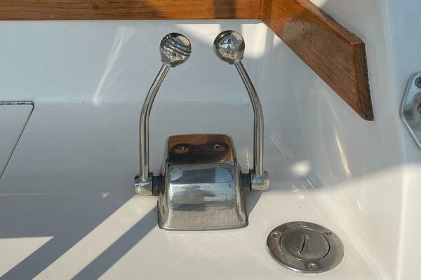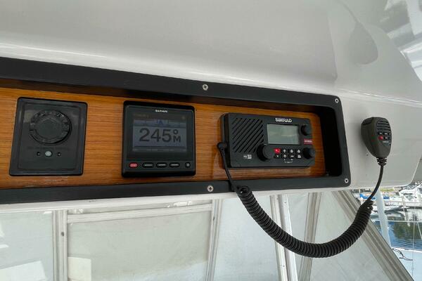 Stepping aboard Aqua Ma’am, it’s easy to see why the 38 is one of Ocean’s most beloved models. The large, functional cockpit and spacious flybridge prepare this vessel for bluewater adventures. Inside, you’re welcomed by a roomy interior featuring beautifully varnished teak and a full galley to the port side. The generous L-shaped lounge provides exceptional comfort. The well-designed floor plan includes a master stateroom situated at the bow and twin single berths on the port side. The wide-open salon is achieved by extending the house forward on the foredeck and cleverly placing the guest berths beneath the galley.