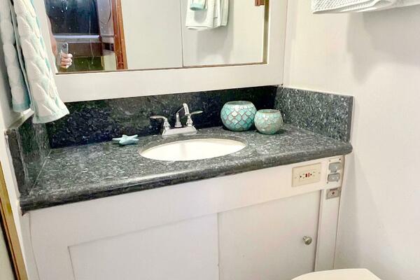 The hull, a vibrant Seafoam Green was painted in 2020, while the cockpit, foredeck, and superstructure were also painted with Awlgrip in April 2021. The most recent bottom paint was in April 2021.