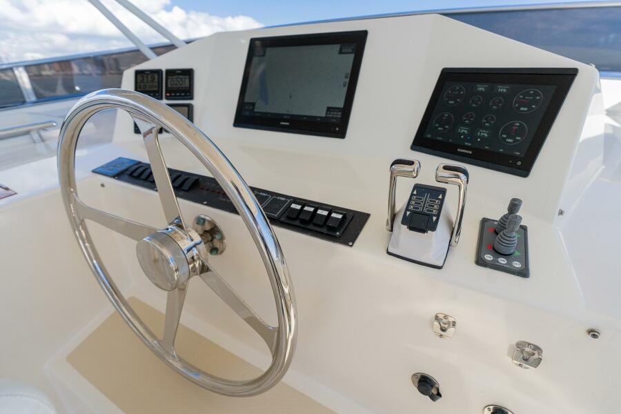 - New Garmin electronics package at both lower helm and flybridge