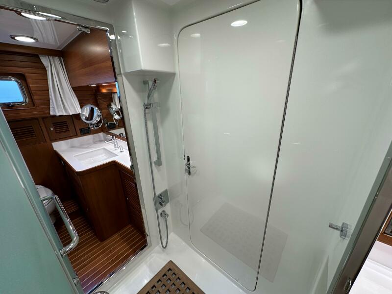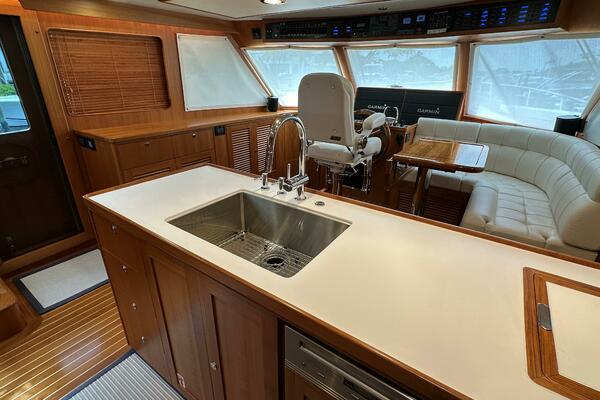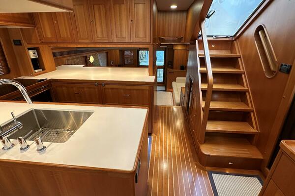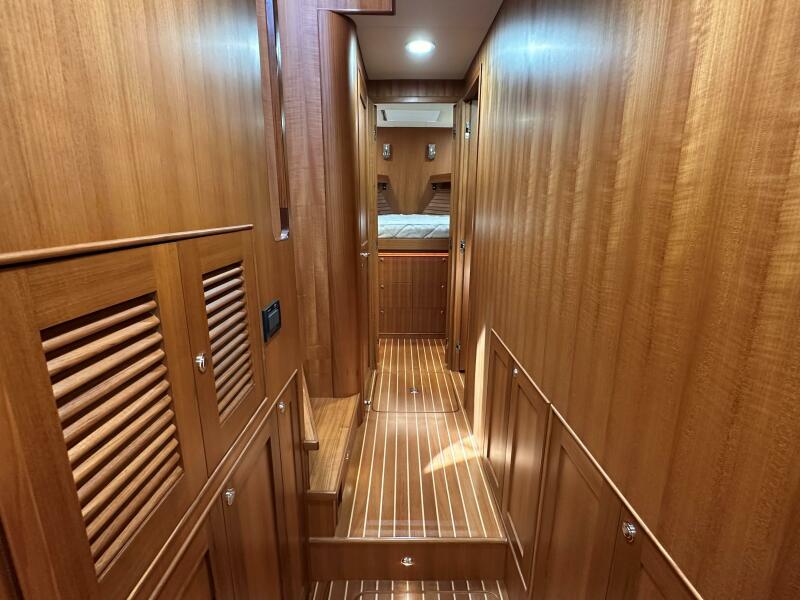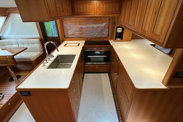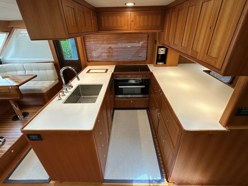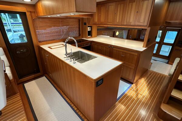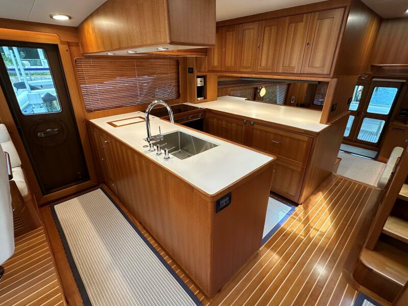 - Custom galley aft with ample storage to port