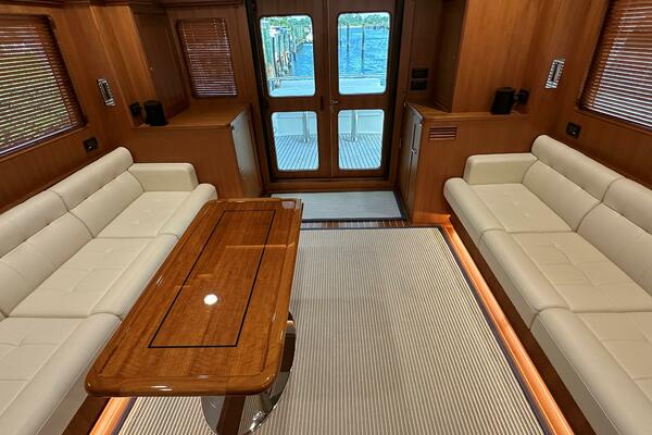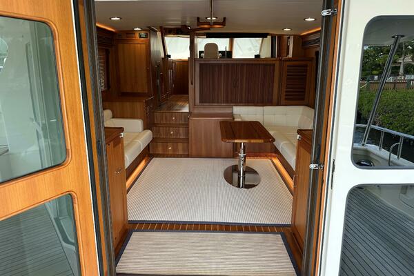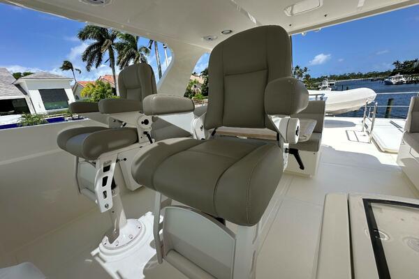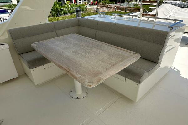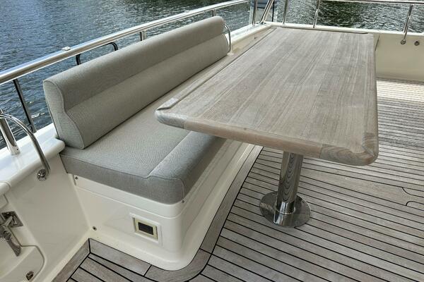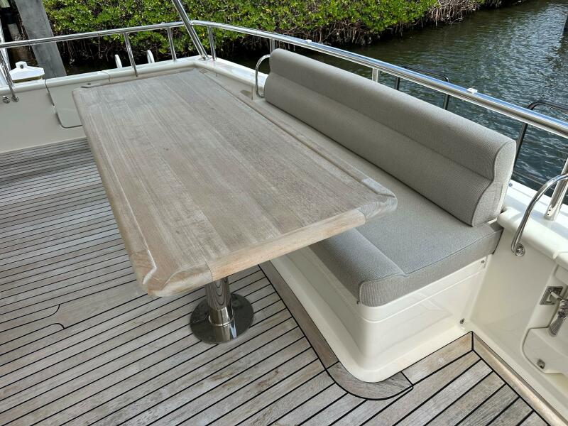 - Ample outdoor seating in cockpit, bow, and flybridge.