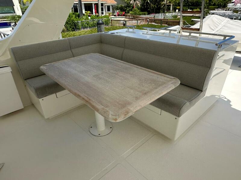 - Settee on cockpit with teak table