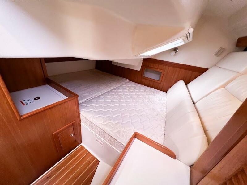 • Large queen berth forward, private walk in aft cabin - no foam pads, both equipped with a comfortable custom mattress
