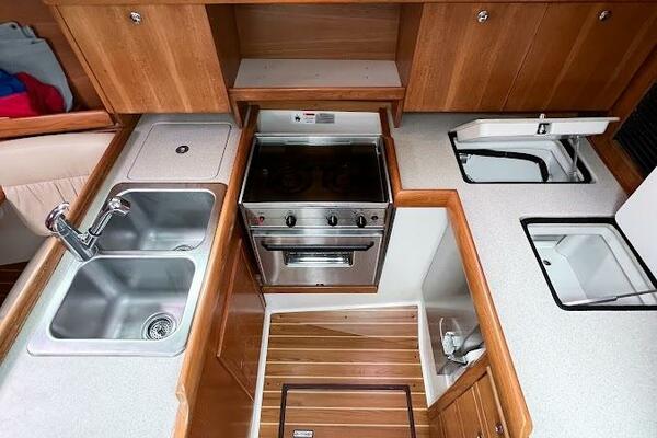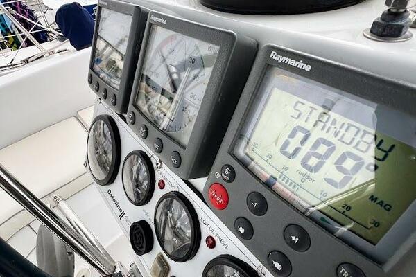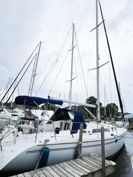 Notable Upgrades: New 135% Ullman Genoa, AC/Heat, Centerline Island Queen Berth (Forward), In-Mast Furling, Heavy Duty Raymarine ST6200 Autopilot, Ultraleather Upholstery, Cockpit Cushions, Hot/Cold Cockpit Shower, Large Walk-Through Transom with Swim Platform, Flat-Screen with DVD, Electric Head & Holding Tank, Close to 7 foot headroom |