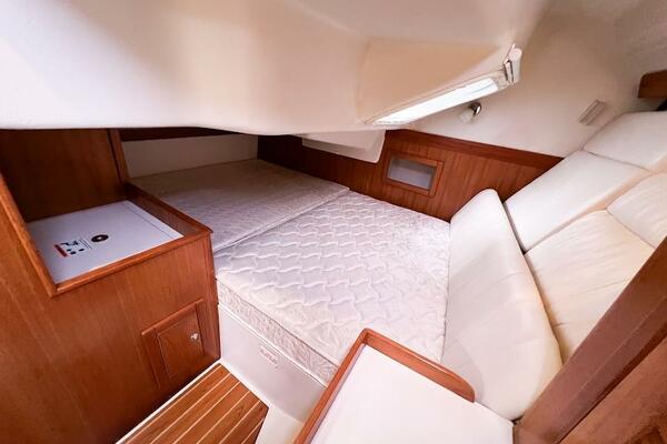 - Traditional mattresses in both forward and aft cabins