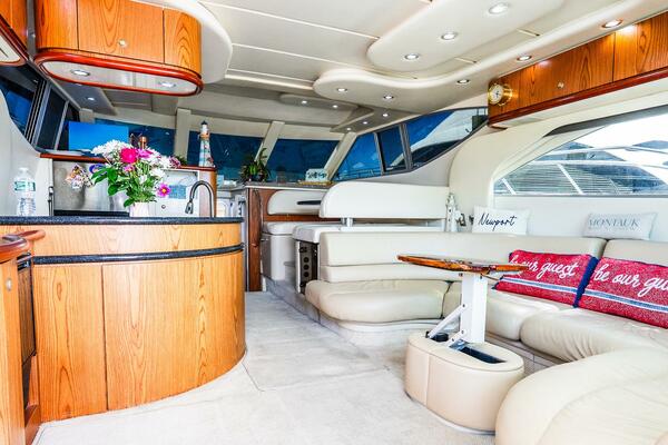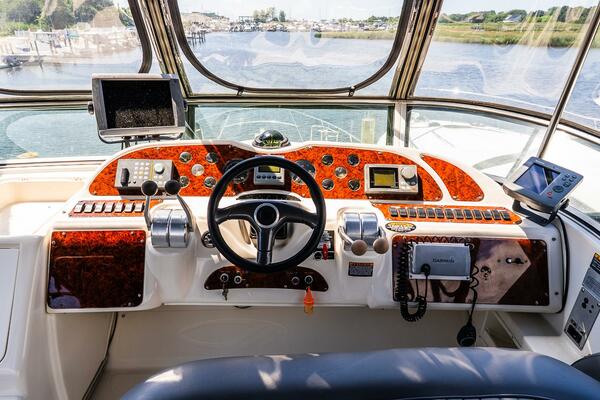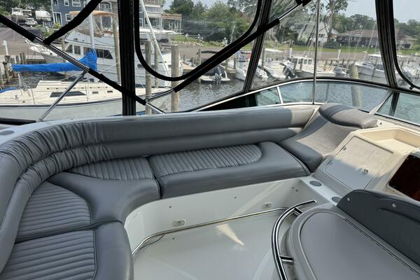 A very nice opportunity to own this 2000 46 SCB Maxum. She’s been well cared for by an owner who takes pride in her condition and especially in the engine room. You can read all the recent updates that were performed. This boat has a two-stateroom layout with two heads. A galley near the entry way for entertaining. A dinette raised forward for great viewing. Lots of windows for natural light into the salon. A large flybridge with a large back deck and acts as an overhang for the cockpit. She also has L lounge seating on the bridge.