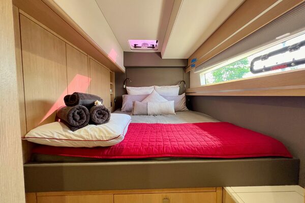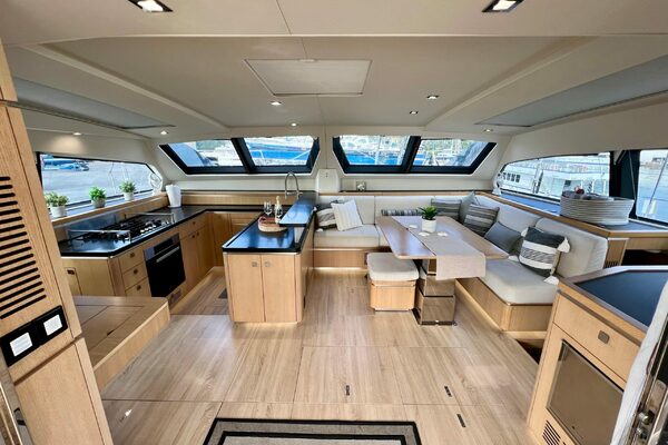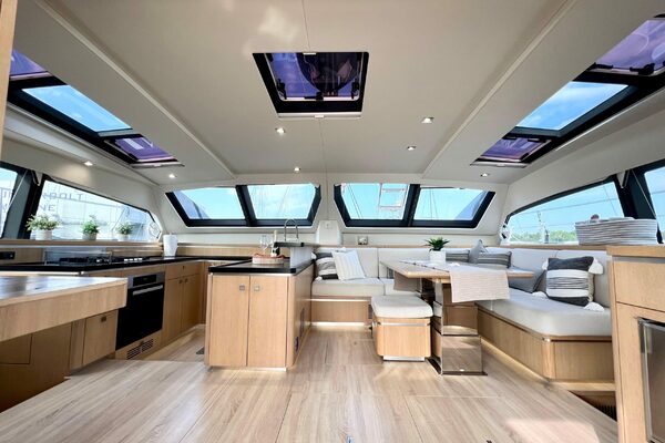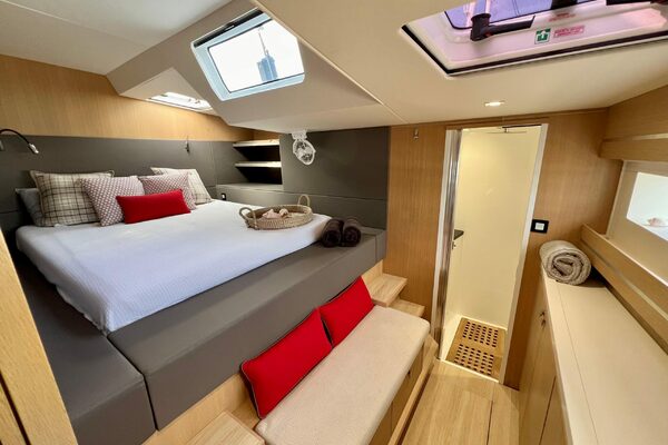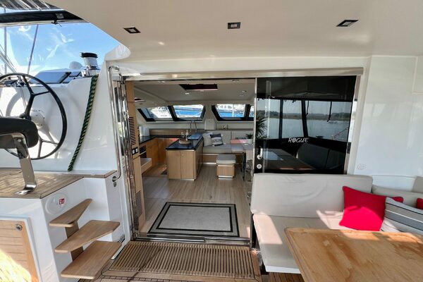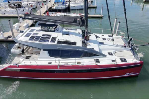 ROGUE is an iconic example of the highly desirable Privilege 510 model. Finished and painted with a tasteful but striking red hull and black accents, Rogue is a head turner in any anchorage. For that reason, Privilege presented Rogue at the 2023 Annapolis Sailboat Show and has featured her in many of their marketing and advertising campaigns.Privilege Catamarans has a long and well-deserved reputation for producing some of the nest luxury blue water sailing catamarans in the world - with a focus on exceptional build quality, rened nishes, and solid construction. Rogue was splashed at the yard in Les Sables-dOlonne, France in the Spring of 2021.Rogue is a privately owned vessel primarily used for family sailing trips in the Caribbean and US East Coast. She is currently owned by an experienced sailor and seasoned boat owner whos kept her in immaculate condition. They have recently purchased a larger catamaran so its time for Rogue to nd a new home.She has the very functional 4 double cabin layout, which is ideal for liveaboard family cruising or hosting guests. Each cabin features its own ensuite head with separate shower stall. The interior nishes are superb with Alpi Oak cabinetry, white lacquers, high end upholsteries, and Corian countertops. The open concept galley and salon oers a panoramic view over the entire deck and a seamless connection with the aft cockpit through the large sliding glass doors. The salon is bright and airy with a comfortable and functional L-shaped settee. The U-shaped galley has extensive counter space, cabinets, and a full suite of appliances.The lateral chart table is easily accessed from the cockpit. The ergonomic layout oers multiple locations for lounging or relaxing, ample storage space, and functional seating. All operations of the boat can be performed from the bulkhead oriented helm position which allows for unobstructed visibility, easy sail handling, and full weather protection.Dont be fooled though, Rogue is more than just an attractive showboat. She also features upgraded equipment to ensure a fantastic sailing experience. Several of her equipment upgrades include a canoe boom, square top mainsail, electric headsail furlers, and a comprehensive quiver of sails including a staysail and gennaker.Other highlights include: Yanmar 80hp diesel engines (Approx 1650 hours each) 1200ah ReLion Lithium House Battery Bank Multi-voltage Charging capability (US and EU shore power connections) Onan 12kW Generator Solar 2 x Hydro generators Full Raymarine navigation electronics suite Webasto Air Conditioning / Heating throughout Miele Washing Machine / Dryer Miele Dishwasher WatermakerAnd so much more! Rogue is US Duty Paid and in turn-key condition. She is available for showings by appointment in beautiful Cape Canaveral, FL.