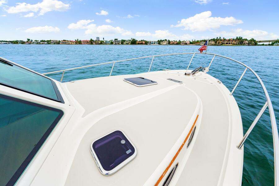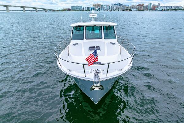 This nearly new 2024 Back Cove 39O is equipped with the highly coveted V12 Mercury Verado 600's with just under 60 hours. She is well kept and ready for immediate delivery. No need to wait for a build slot, start enjoying now while saving a lot of money. The 600's provide very impressive low end torque with the two speed transmission and a very quiet ride. When the solid glass cockpit doors are closed, the helm deck is very quiet at 82DB while at cruise speed.