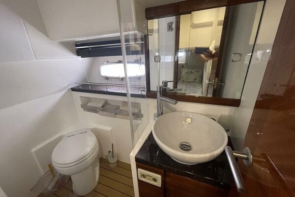 One of the most significant design features of the S450 is the cockpit layout which makes maximum use of the full beam width of the boat for seating and entertaining. There are four wide forward facing seats at the helm, a fully integrated dashboard, plus a wet bar behind the seats. To the rear the flexible seating and dining arrangement offers comfortable dining for 8. This space can easily be transformed into rear or forward facing sunbathing areas with optional hi lo private bathing platform.