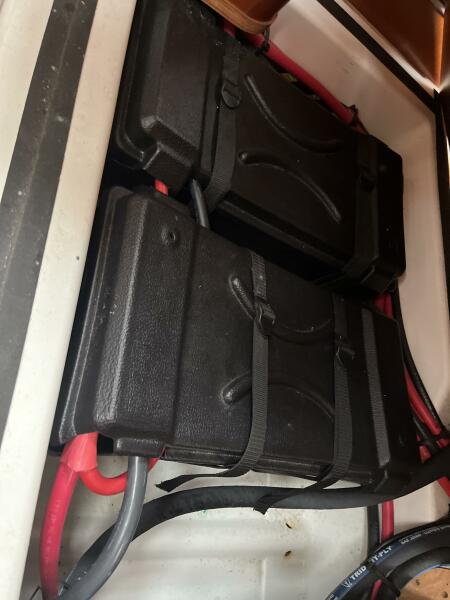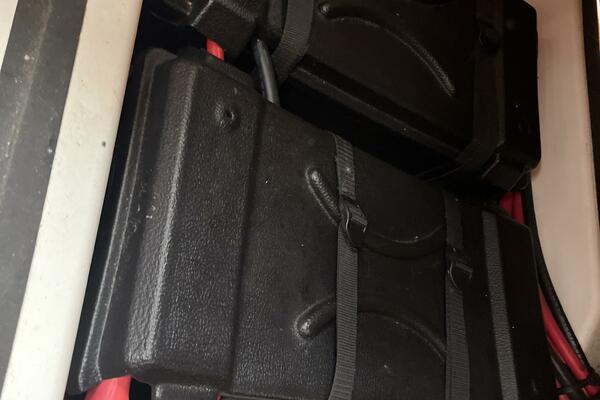- (2) 4D AGM house batteries- wired in parallel; (1) Group 27 AGM engine starting battery; (1) Group 24 AGM generator starting battery
