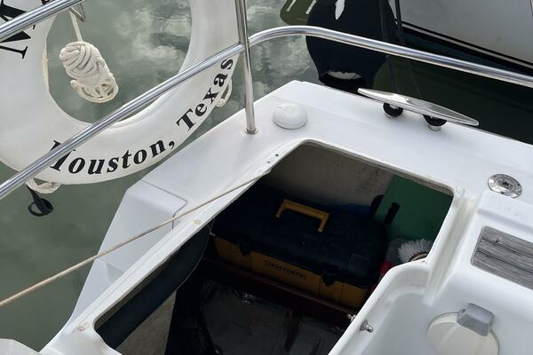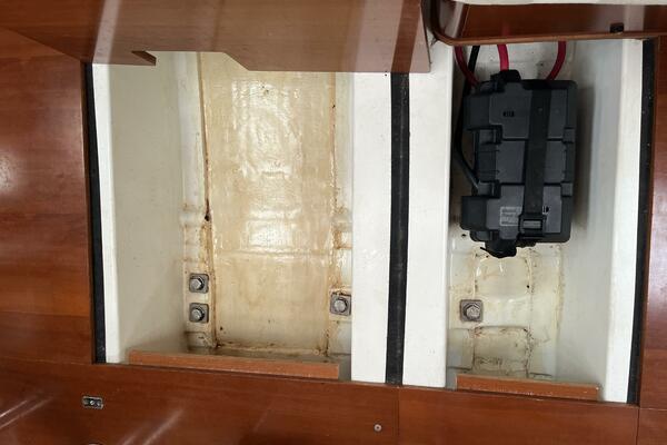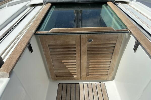 - Cockpit sole & decks are fiberglass/ balsa sandwich with molded gel coat non-skid finish with teak in the cockpit