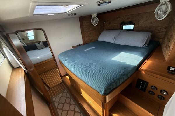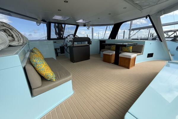 Hull 9 of the Gunboat 55, Starship's decks and hull were constructed utilizing epoxy-infused carbon and corecell foam cores by Gunboat in 2015. Two years later, in 2017, she was finished by Croswait Composites in Wanchese, North Carolina. This 55 was commissioned with ease-of-use and safety in mind, with a focus on owner-operability. While she ticks off the miles with ease and comfort, her systems and sail plan were designed to provide her owners with the ultimate safe yet sprightly cruiser. Starship's long waterline alongside a modest beam result in a very stable, agreeable motion underway in any conditions. Her centerboards offer a minimum draft of 3'8", allowing entry to the most any depth-challenged destination, and their maximum draft of 9'2" provide maximum upwind performance. These centerboards are line-controlled, and in the event of grounding, allow the centerboard to simply retract into it's casing, minimizing the risk of damage beyond line replacement.