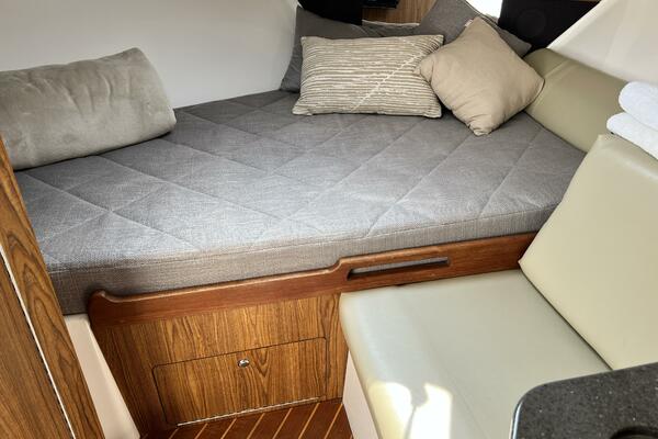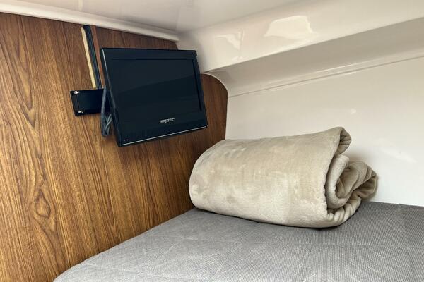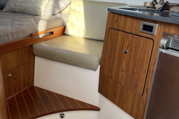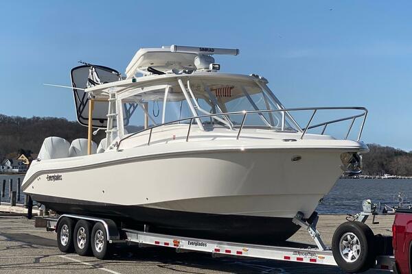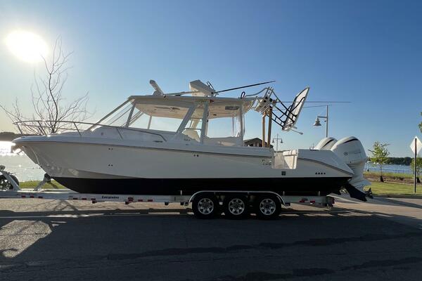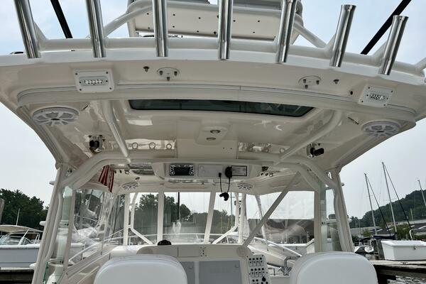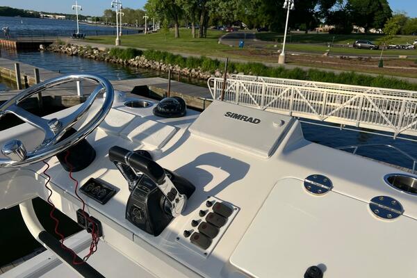 Take a look at the massive upgrade list recently done. Fresh water history since 2020. Upper helm with buggy top AC/Heat at helm and cabin Side Door with dive ladder Rear drop curtains Kenyon Gril