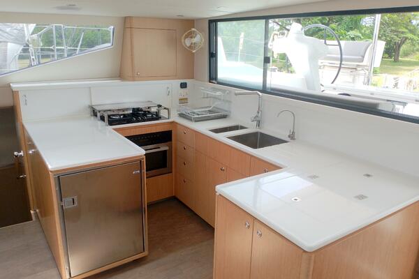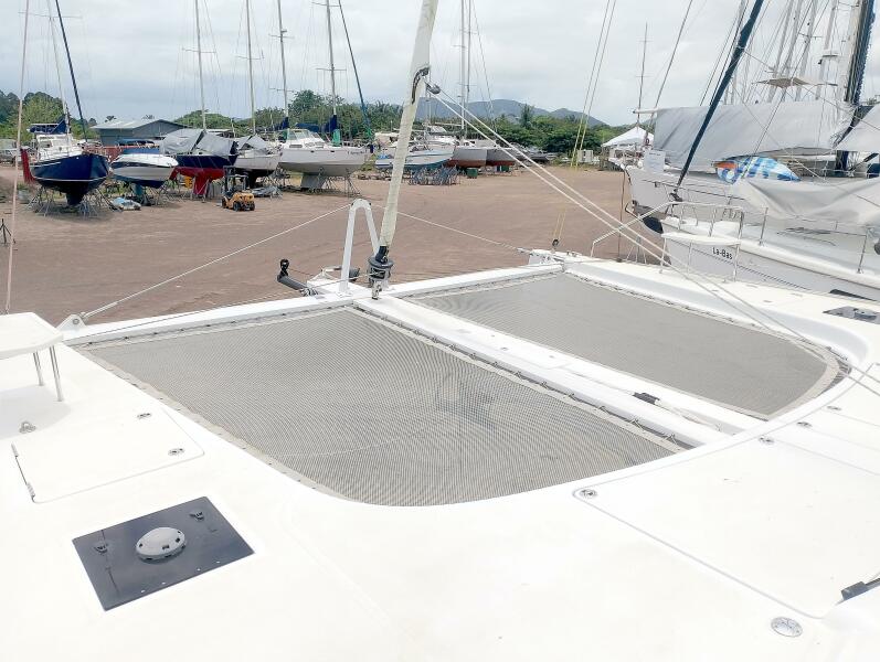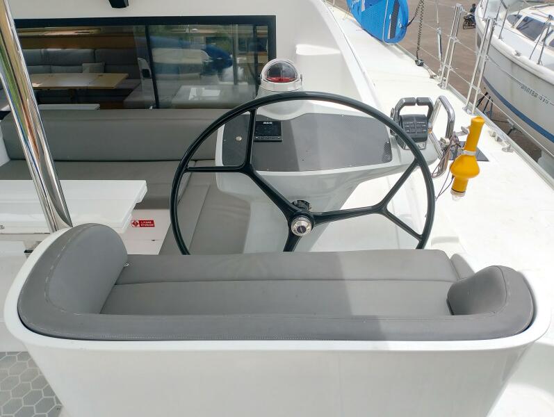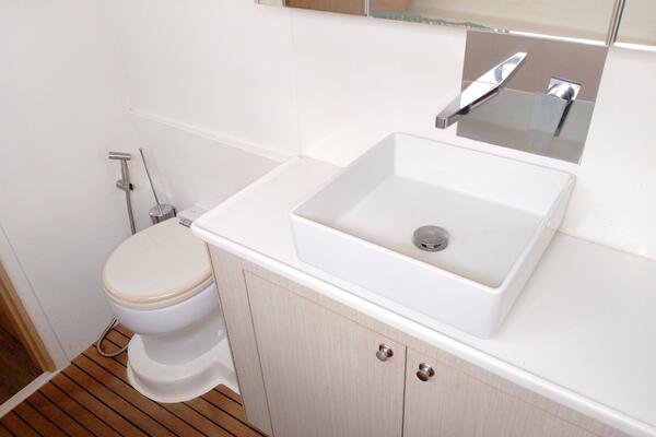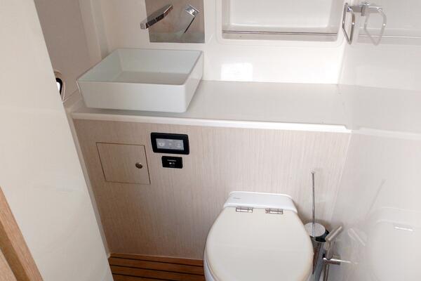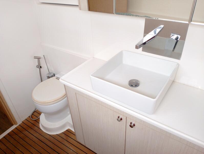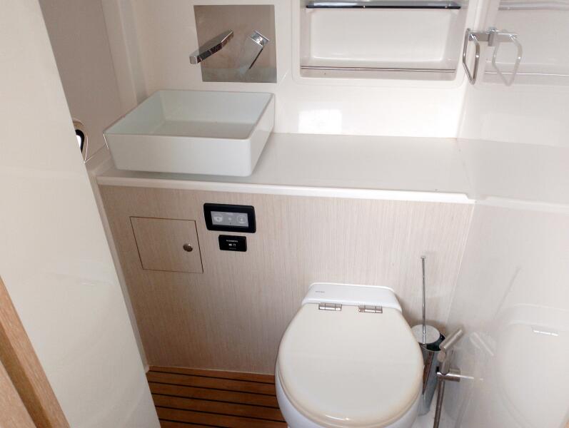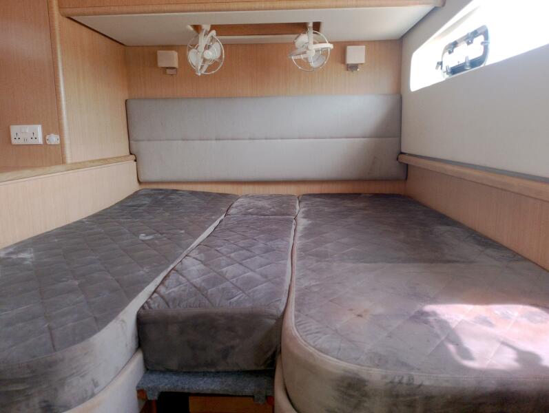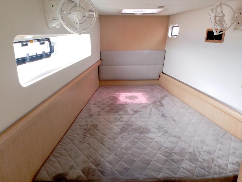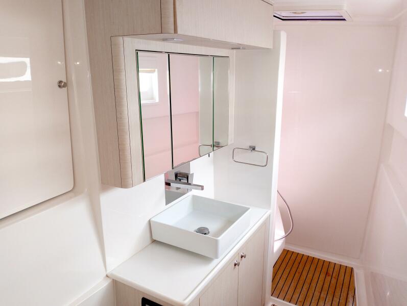Bei Sogni features a thoughtfully designed owner’s layout, dedicating the entire starboard hull to a private suite. This includes a queen-sized island bed, generous storage, and a stylish en-suite bathroom with walk-in shower. The port hull accommodates guests in two well-appointed cabins with a shared head, providing comfort for extended cruising with family or friends.