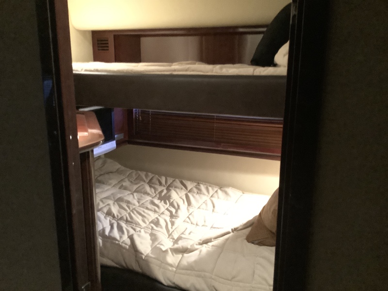 - A well-appointed cabin with a two-stateroom, two-head layout. The forward master stateroom and a guest stateroom with bunks provide comfortable overnight accommodations for family and friends.