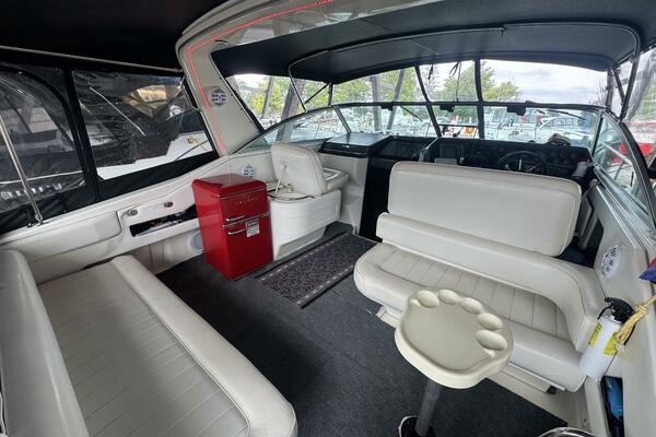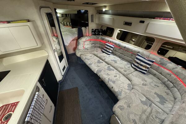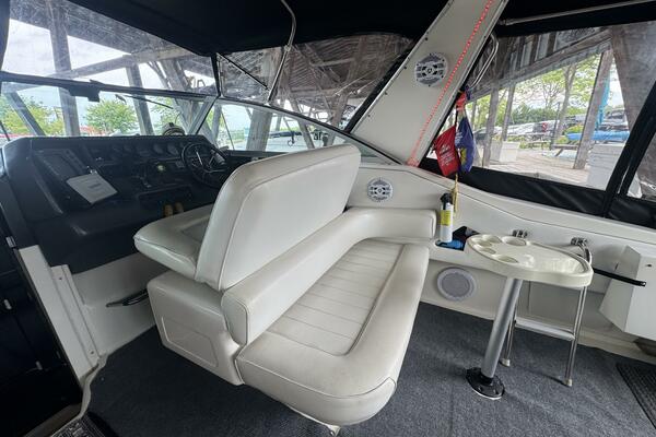 This 1992 Sea Ray 370 Express Cruiser is a prime example of Sea Ray’s reputation for quality craftsmanship! Powered by twin 454 MerCruiser engines with an on-board generator, this yacht delivers reliable cruising. A full canvas enclosure, replaced three years ago, provides weather protection, while a 2020 Garmin GPS and windlass anchor make for easy navigation and secure mooring. An extended swim platform finished with Sea-Dek has been added as well as a cockpit bar refrigerator.
