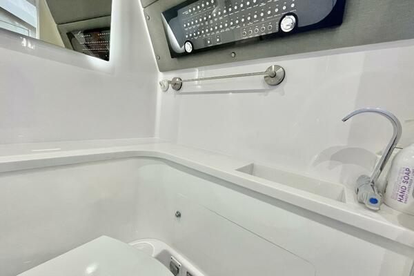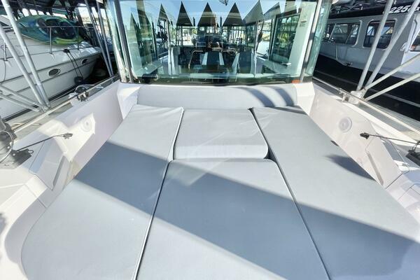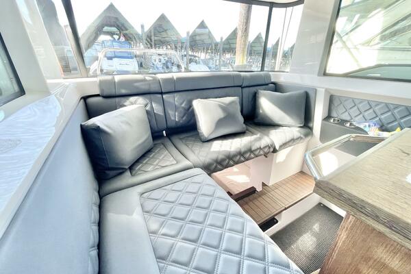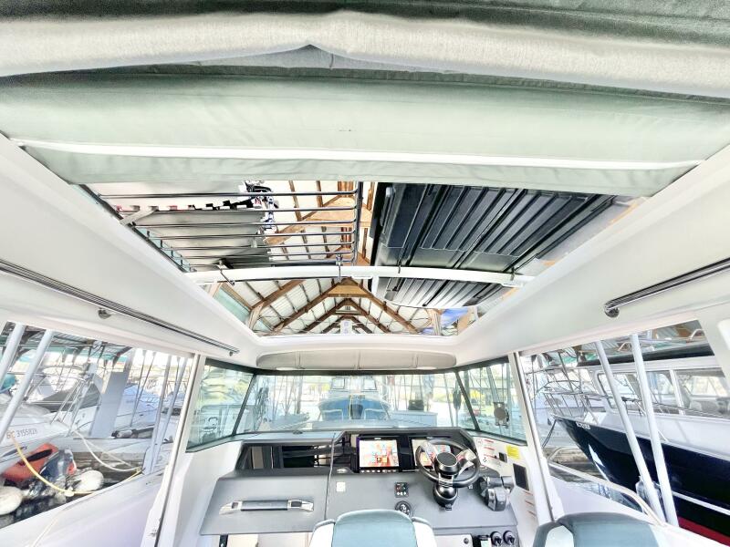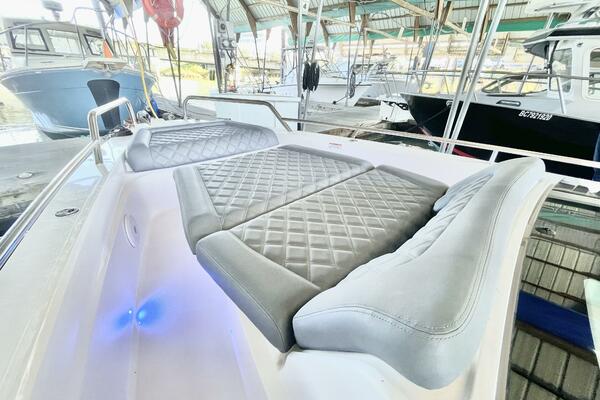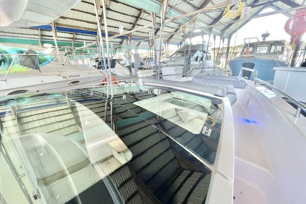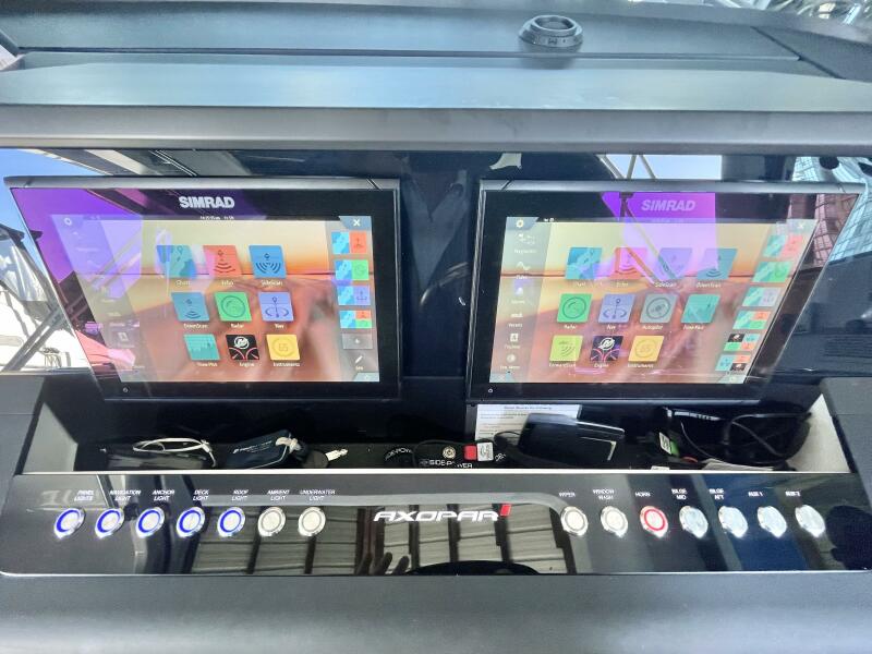 With a recent full survey inspection showing zero deficiencies, complete service records with oil changes and maintenance every 100 hours, and just 385 hours on her twin Mercury 300s, this boat stands out as a meticulously maintained and cared-for example.
