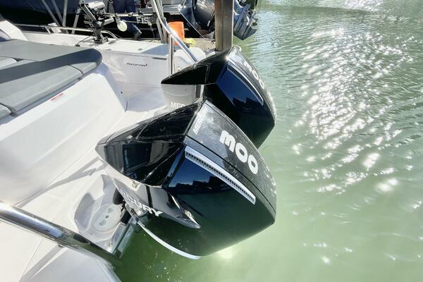 - Twin Mercury 300hp V8 outboards, smooth and efficient