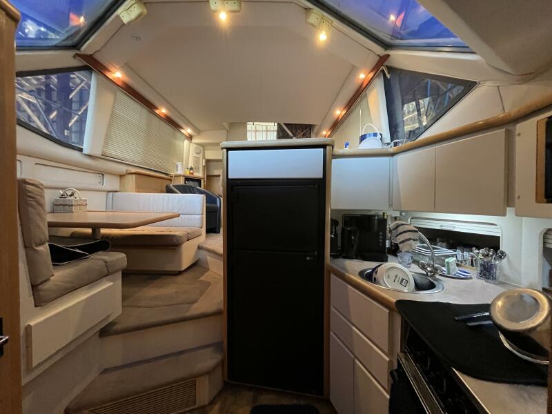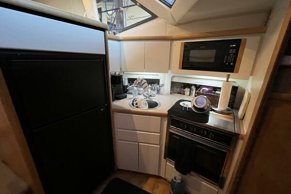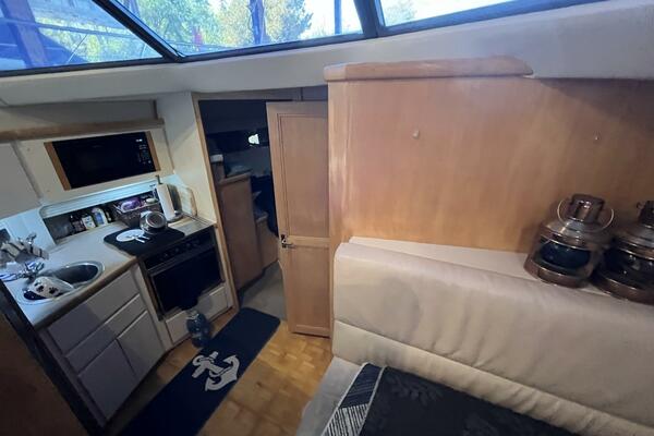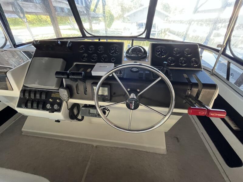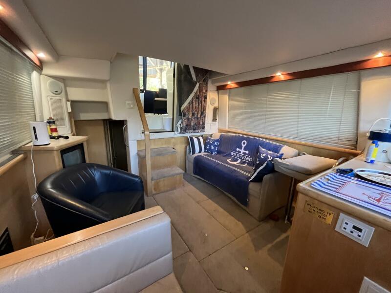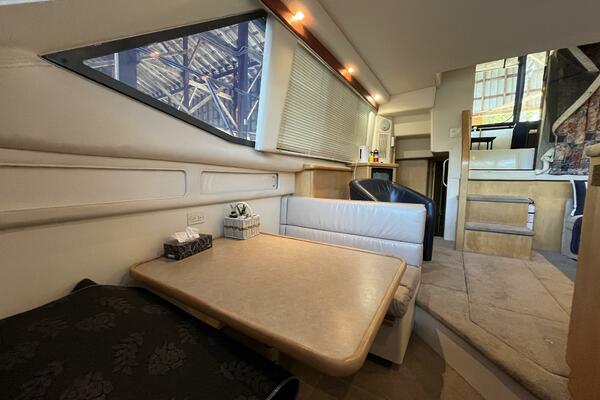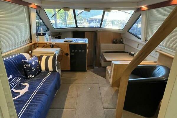 Powered by twin MERCRUISER 7.4L inboard engines, each delivering an impressive 300 horsepower, it promises exhilarating performance and reliability. The yacht is equipped with an electric windlass, enhancing convenience during anchoring. The spacious interior includes a well-appointed head, providing comfort for guests. The design of the aft cabin offers a serene retreat, making it an ideal choice for weekend getaways or extended voyages.
