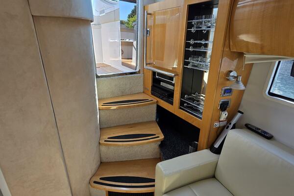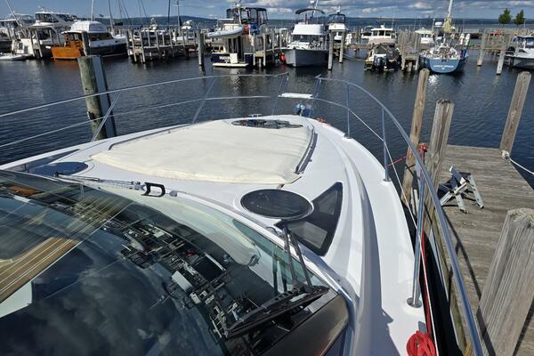 The 2009 Four Winns V435 is a luxury sport cruiser designed for both performance and comfort. The V435 cuts no corners and spares no expense, it simply offers a fantastic design with unmatched fit and finish as well as an abundance of creature comforts! The V435 features a fully equipped galley, large salon with panoramic windows, two heads and two private staterooms, making it perfect for entertaining or extended trips. With its sleek profile, spacious layout, and powerful twin diesel engines, it offers exceptional handling and a smooth ride. Additional highlights include a retractable hardtop, state-of-the-art navigation systems, and a generous swim platform, delivering a blend of elegance and functionality on the water. Ideal for boating enthusiasts seeking a premium cruising experience. This is a fresh water boat only, spending it's life on the Great Lakes. Upgraded Lumitec Underwater lights. Hydraulic swim platform with brackets for dinghy. Diesel generator. Retractable 50amp power cord. Teak on swim platform was professional redone with grit (for swimming) and in cockpit (oiled). Full suite of Raymarine E120, open array radar, and auto pilot. This boat is ready to cruise and is priced to move, so be sure to book your private showing today! FRESH WATER ONLY - VOLVO DIESEL IPS500 - HUGE SUNROOF - TEAK DECK - HARDWOOD FLOORS.