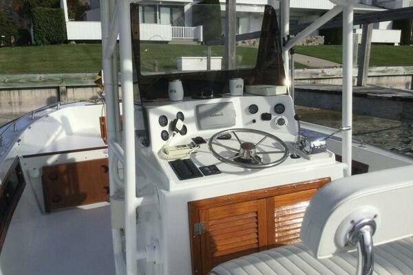 1982 "custom" Bertram 28. Powered by a 1997 Mercruiser 454 engine with 200 hours of use. Upgraded with a stern-thruster and includes trailer.